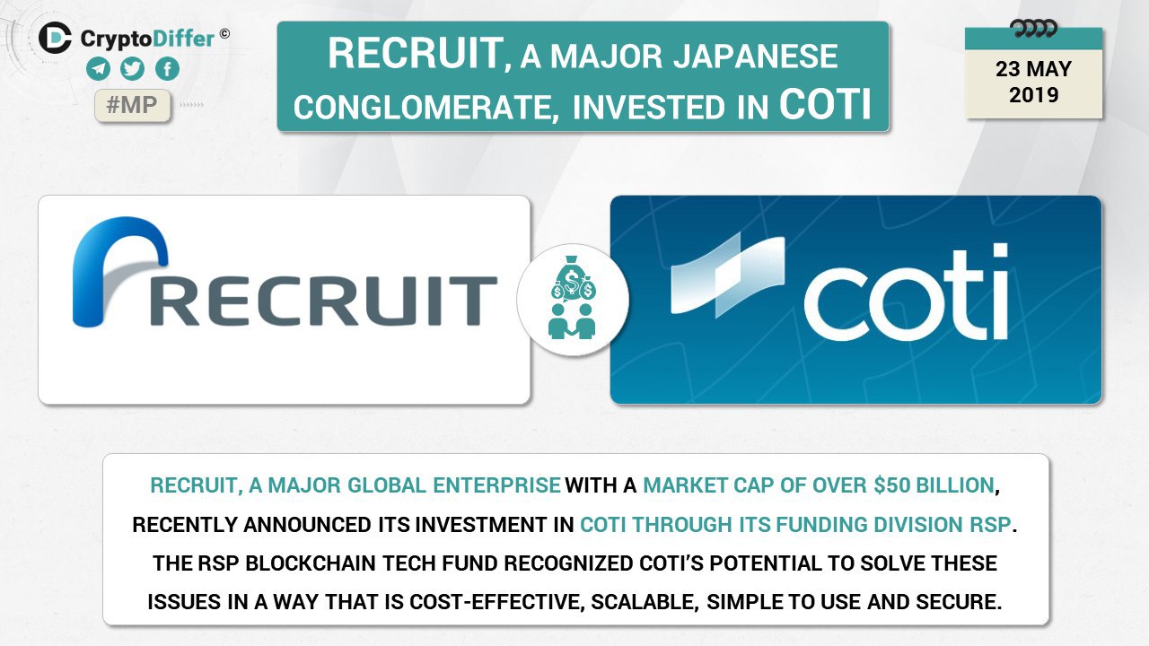 βββοΈRecruit, a major Japanese conglomerate, has announced its investment in COTI.