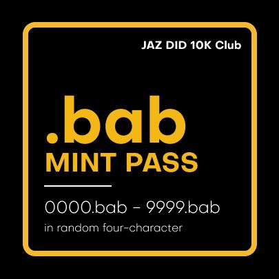 Binance Account Bound (BAB) — это токен, привязанный к душе, для пользователей Binance, прошедших проверку подлинности с настоящим именем. Владельцы $BAB могут получить Mint Pass с номерами от 1000 до 9999. Все 10 000 четырехсимвольных .bab будут сгенерированы случайным образом.
