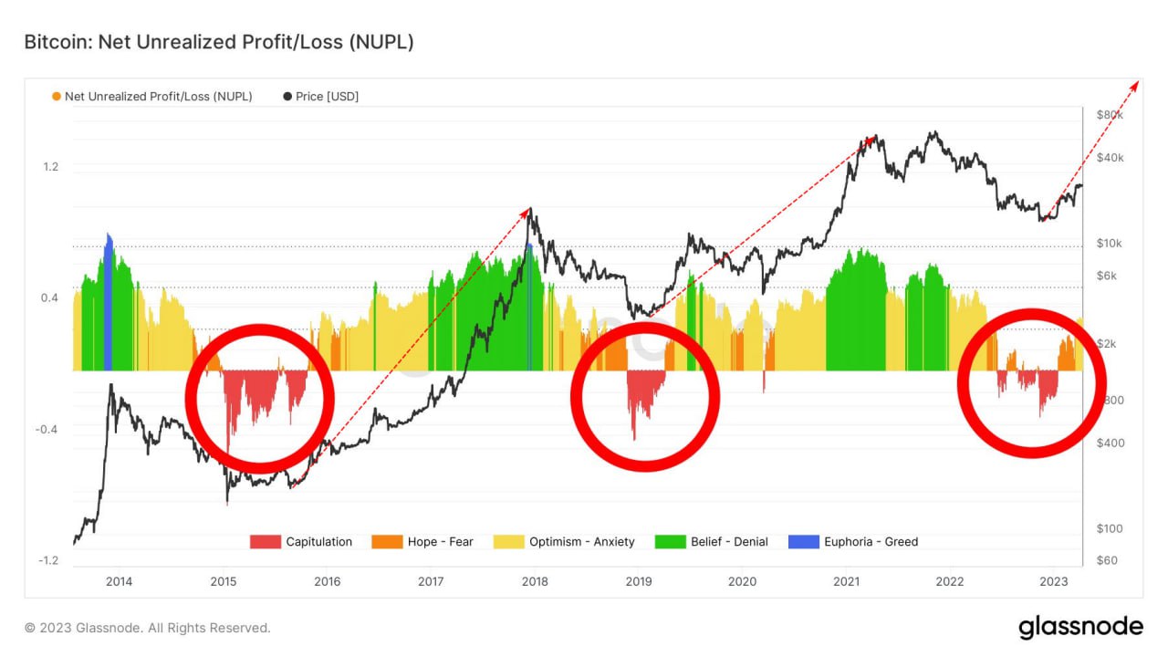 По индикатору NUPL (чистое соотношение прибыльных и убыточных монет) создана полная копия для потенциального буллрана
