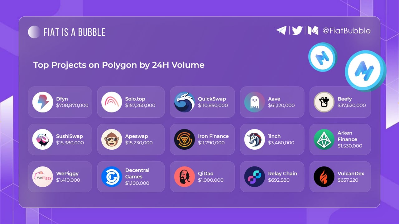 🔥Топ проектов в сети Polygon по торговым объемам за 24 часа