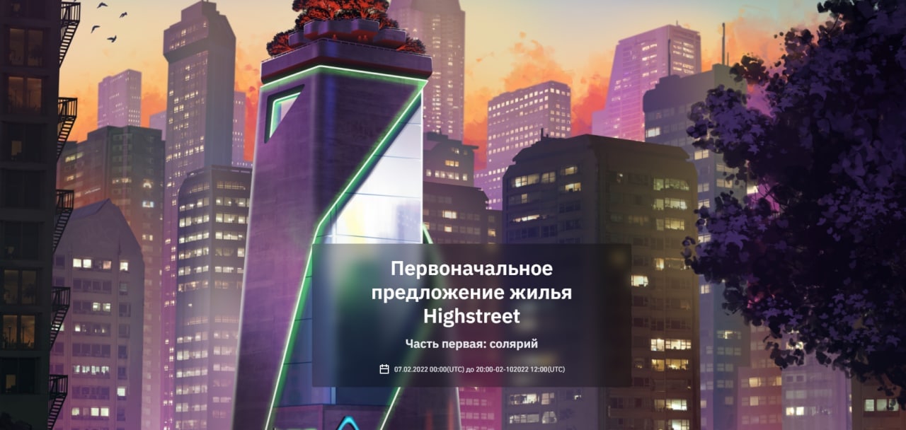 Первым регионом является Highstreet City - через Первоначальное Предложение Жилья (IHO) в нём будет продано 2000 ящиков-орбов с апартаментами, которые откроются через 48 часов.