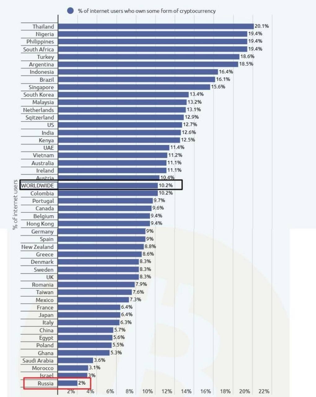 ▪️ Примерно 10,2% населения мира, пользующегося интернетом, владеет криптой.