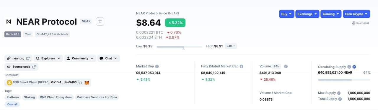 На данный момент, токен имеет ютилити: для оплаты за газ, запуска узлов валидатора, голосование для управлению сетью. Токен имеет очень сильный потенциал роста, мы вам не будем сейчас приводить множество доводов, но хотим сказать, что крупные фонды недавно заносили в Near по 12-18$, а это хоть что-то, но говорит.