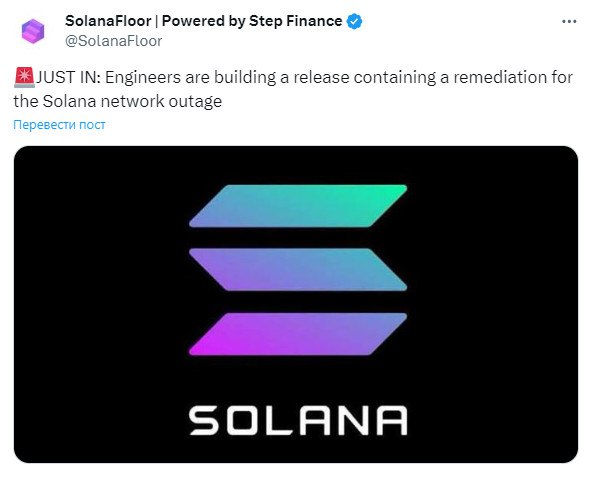🛠 Инженеры Solana создают версию, содержащую исправление сбоя в сети.