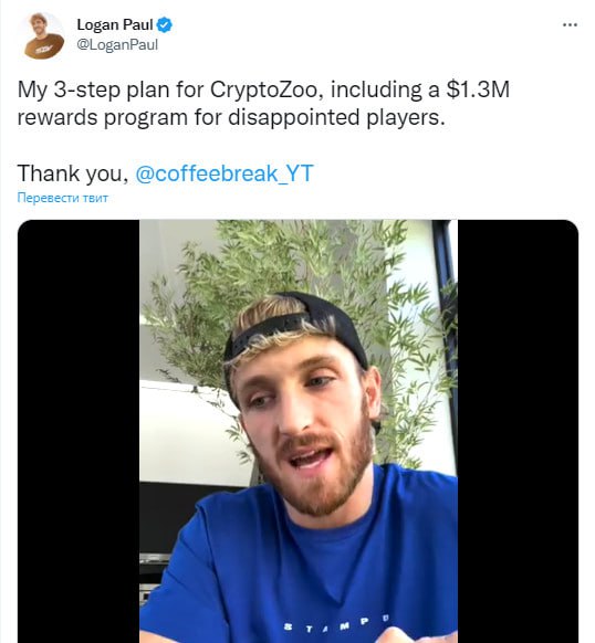 💰Ютубер Логан Пол распределит 1,3 миллиона долларов на вознаграждения для разочаровавшихся игроков в его NFT-проекте CryptoZoo