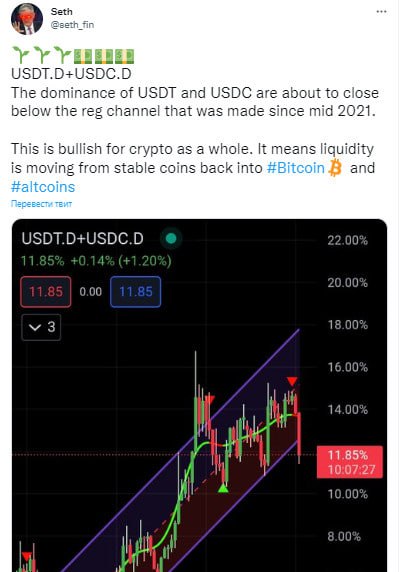 🤔"Доминирование USDT и USDC вот-вот выйдет из канала, созданного еще в середине 2021 года.