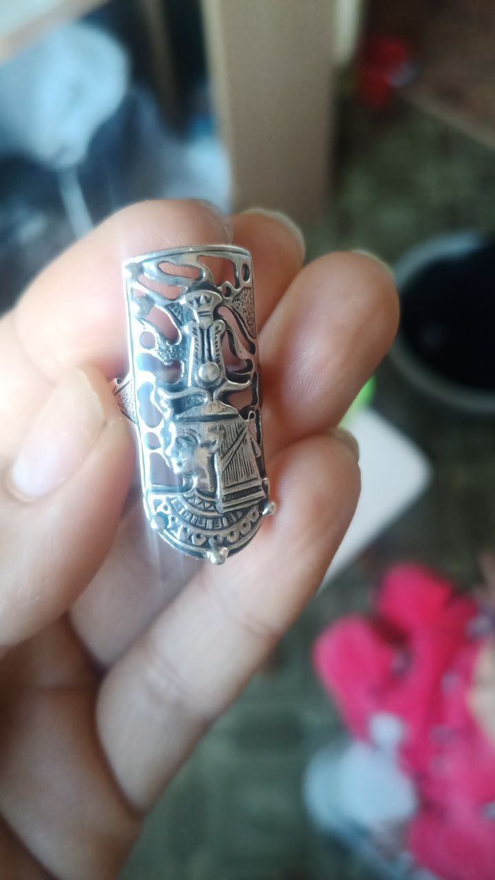 Подобной "короны" не существует. В узоре кольца смешаны признаки египетских царских корон под названием Хену, Чени и Хемхемет.