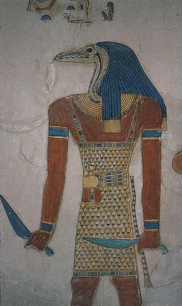 На картинке выше👆👆👆 - демон - Шезму - тот, что сокрушает злодеев на бруске, а их головы бросает под виноградный пресс, чтоб сделать из крови винишко для Осириса