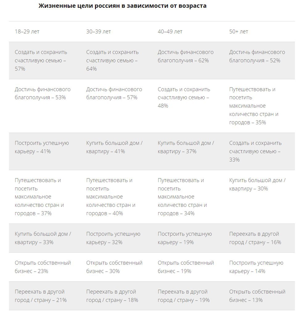 КАК МЕНЯЮТСЯ ЖИЗНЕННЫЕ ЦЕЛИ С ВОЗРАСТОМ