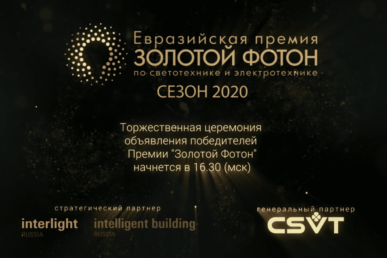 Являясь генеральным партнером премии, мы поздравляем организаторов и благодарим за состоявшуюся, не смотря на пандемию, церемонию. Премия «Золотой Фотон» позволила собрать онлайн российских производителей, осветить будущее светотехнической отрасли и выделить сильнейшие проекты 2020 года.