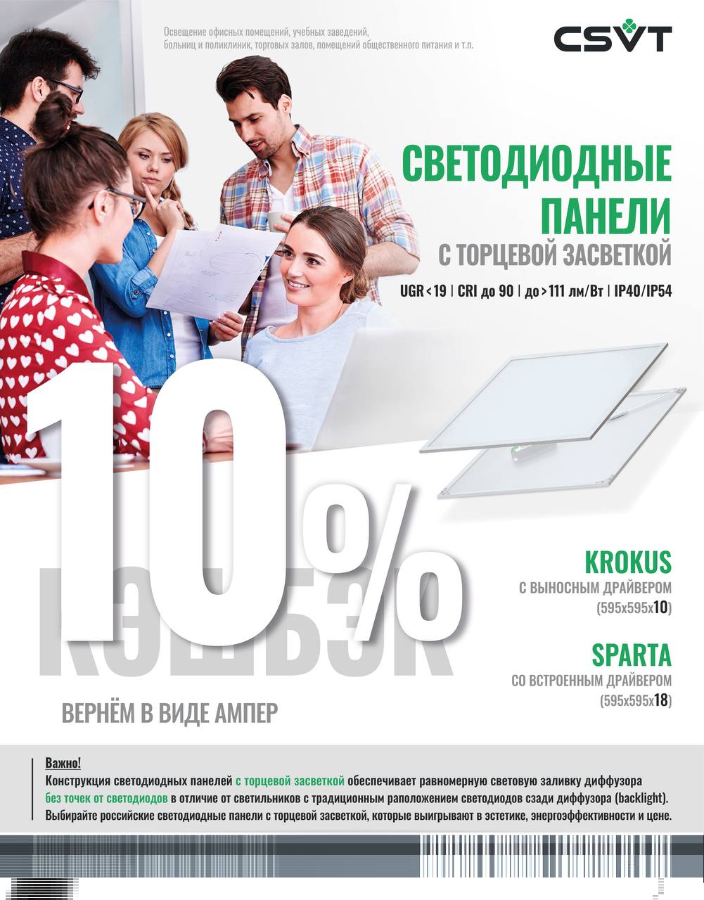 С 1 марта приобретайте светодиодные панели с торцевой засветкой и получайте кэшбэк 10%!