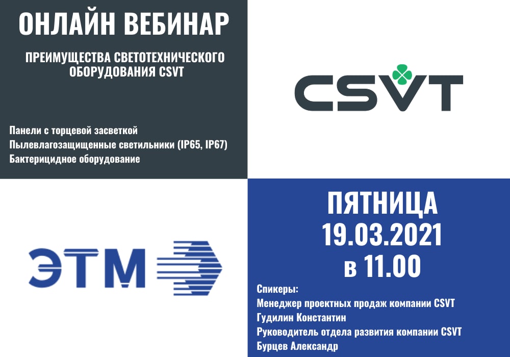 Компания CSVT совместно с компанией ЭТМ проводит онлайн встречу, посвященную презентации основной продукции и нового ассортимента CSVT.