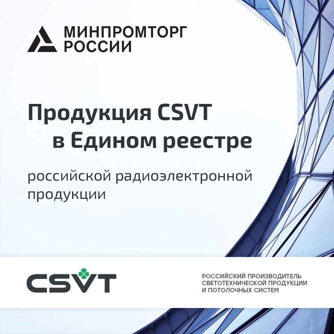 Светодиодные светильники CSVT включены в Единый реестр российской радиоэлектронной продукции, формированием и ведением которого занимается Министерство промышленности и торговли РФ.
