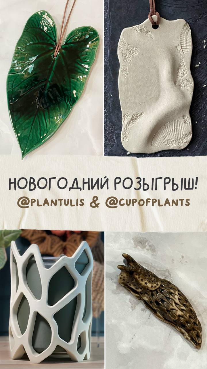Cup of plants pinned «✨ Новогодний розыгрыш от Plantulis и Cup of plants✨ Поднимаем новогоднее настроение и дарим подарки: 1. Керамический лист-панно. 2. Блок для мини-орхидей. 3. Кашпо Айви на 1500мл с фитильный поливом. 4. Милый слизень для украшения ваших горшочков. Правила…»