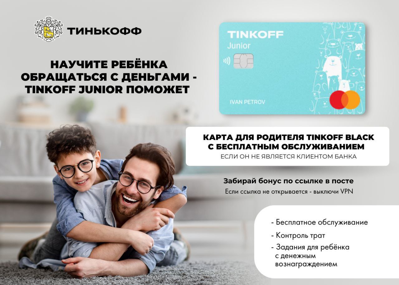 Вместе с детской картой Tinkoff Junior вам придёт взрослая карта Tinkoff Black, если вы не являетесь клиентом банка.