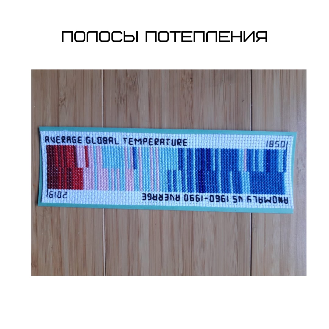 Следующей ее работой стали полосы потепления. Она уже видела подобные работы и решила сделать что-то похожее. Художница нашла данные за последние 150 лет и визуализировала их на закладке.