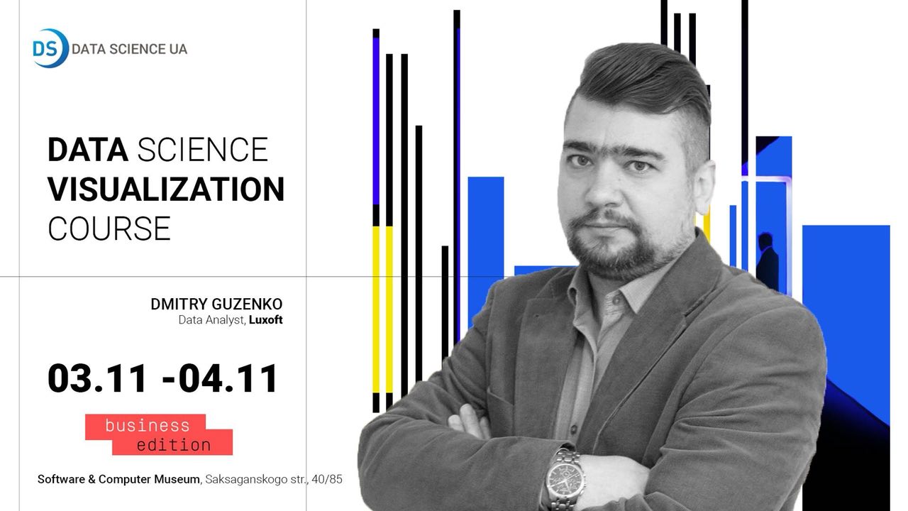 3 та 4 листопада Дмитро Гузенко, Data Analyst, Luxoft проведе дводенний курс Data Science Visualization.