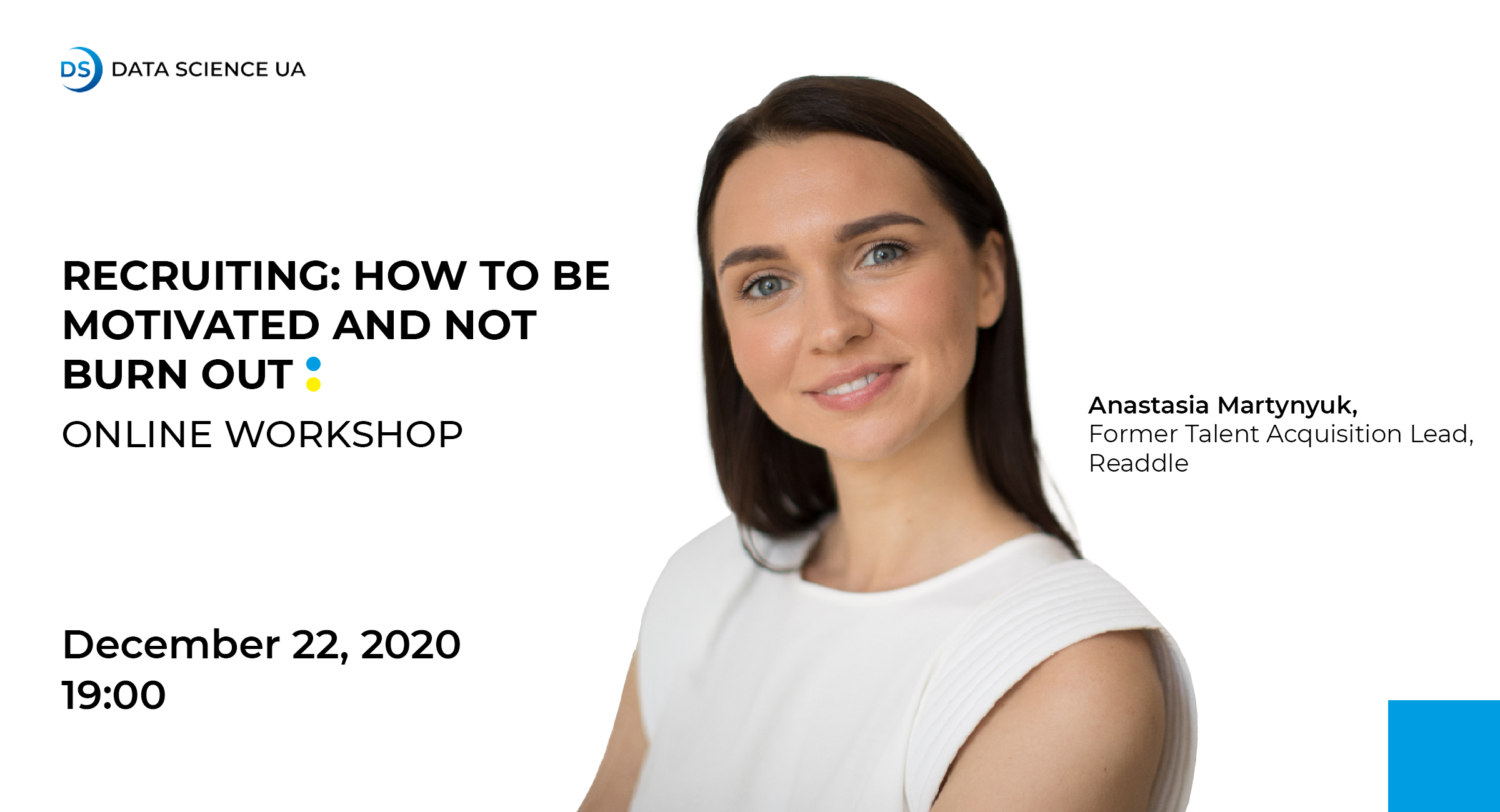 Друзі, сьогодні останній день перед подорожчанням! Встигніть зареєструватись на неймовірний вебінар "Recruiting: how to be motivated and not burn out" з Анастасією Мартинюк, Former Talent Acquisition Lead at Readdle, Psychologist and Career Counselor.