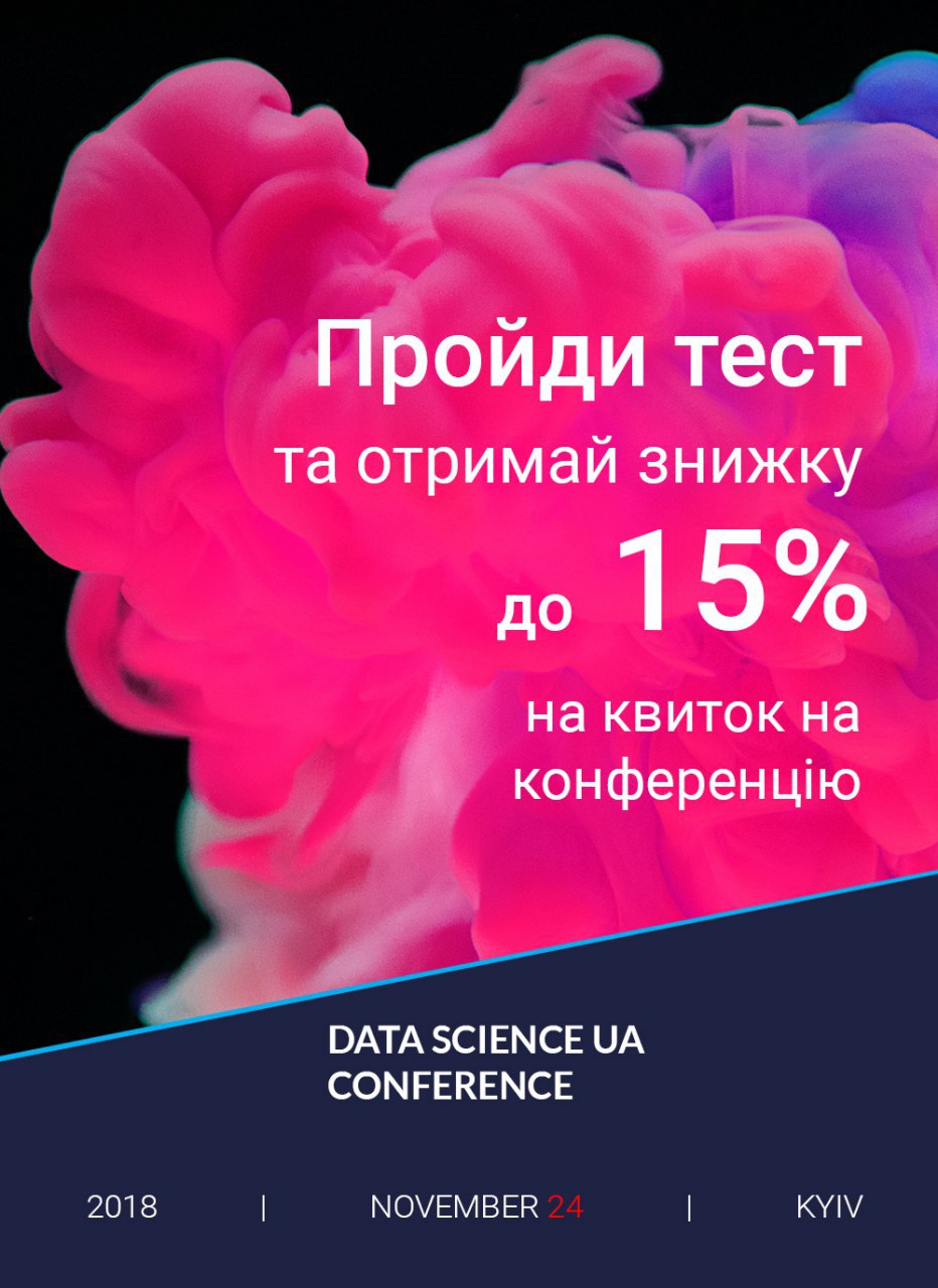 Проходь тест, набирай бали за правильні відповіді та отримуй знижку до 15% на квиток на конференцію Data Science UA!