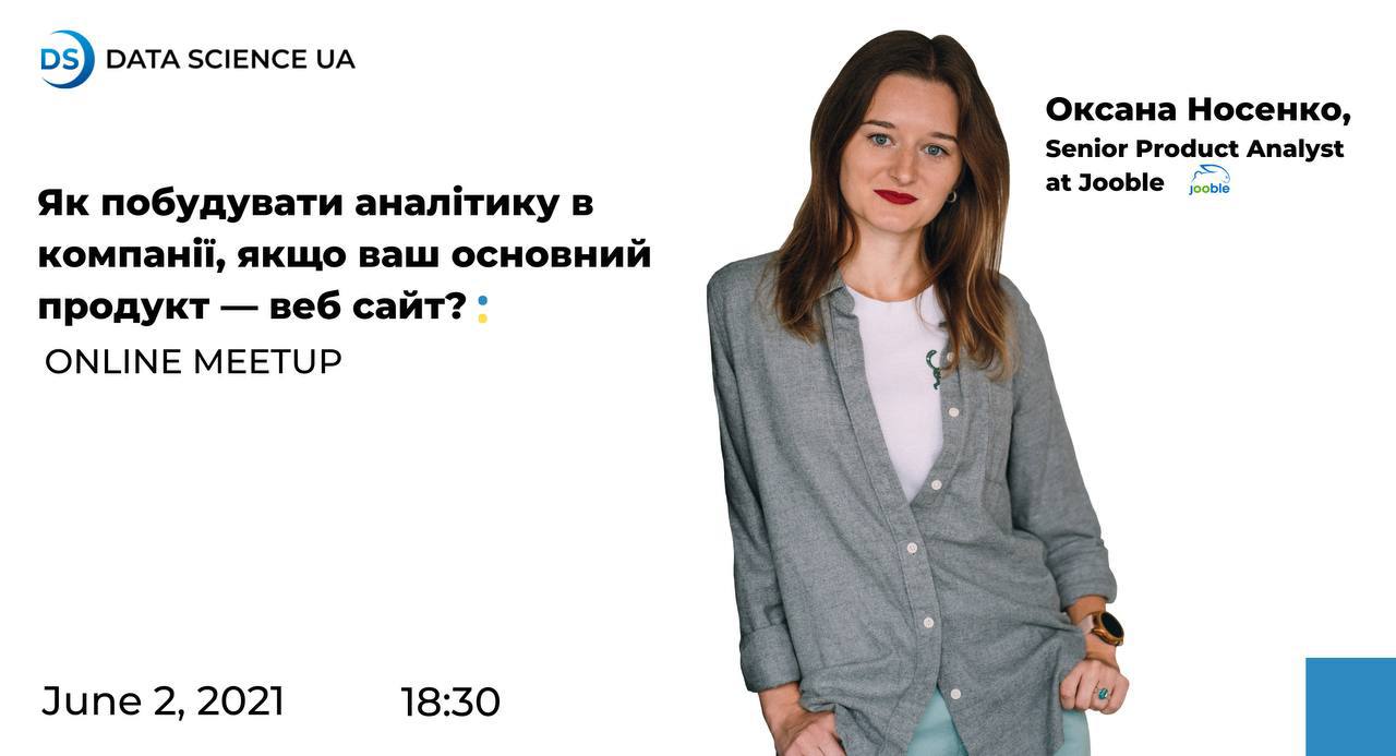 2 червня Оксана Носенко проведе онлайн мітап на тему: Як побудувати аналітику в компанії, якщо ваш основний продукт — веб сайт?