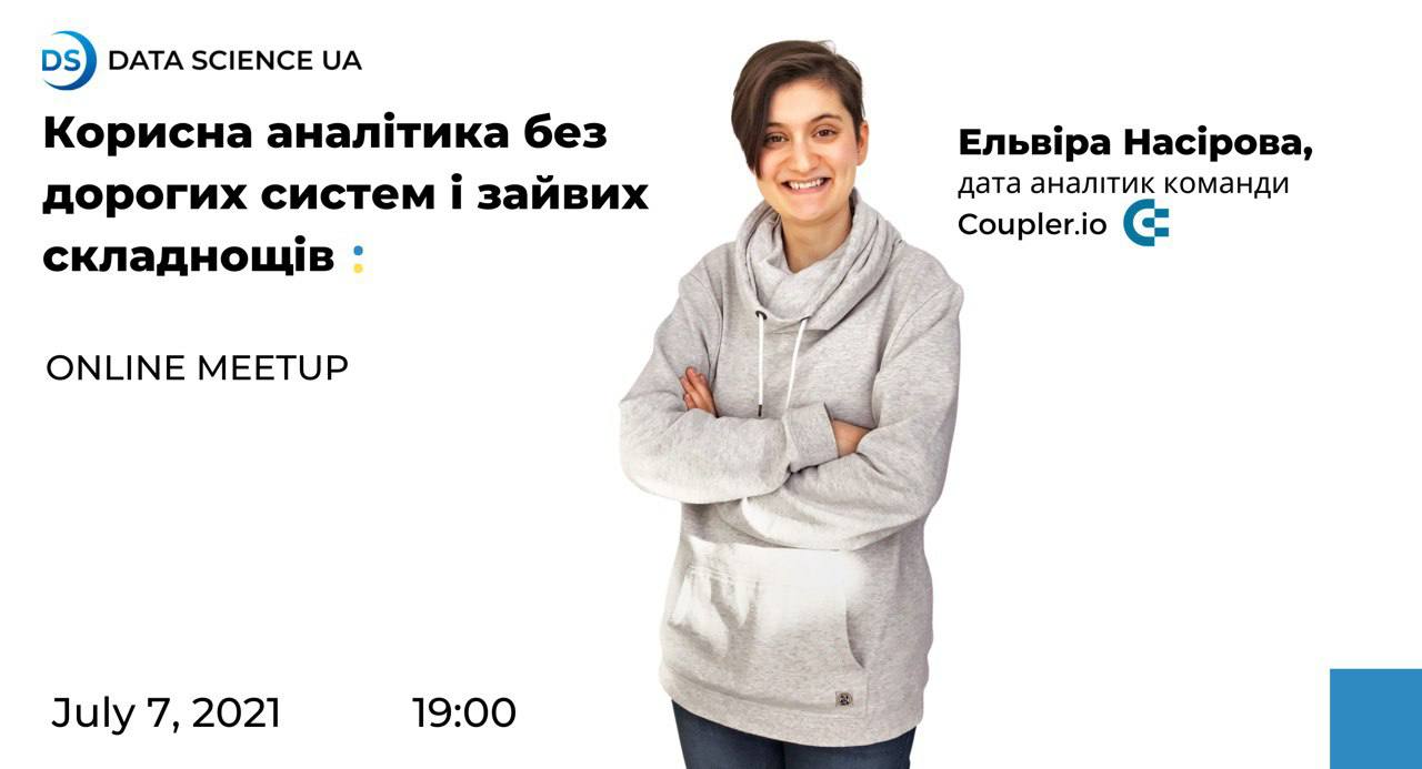 7 липня Ельвіра Насірова, дата аналітик команди Coupler.io, проведе онлайн мітап на тему: Корисна аналітика без дорогих систем і зайвих складнощів