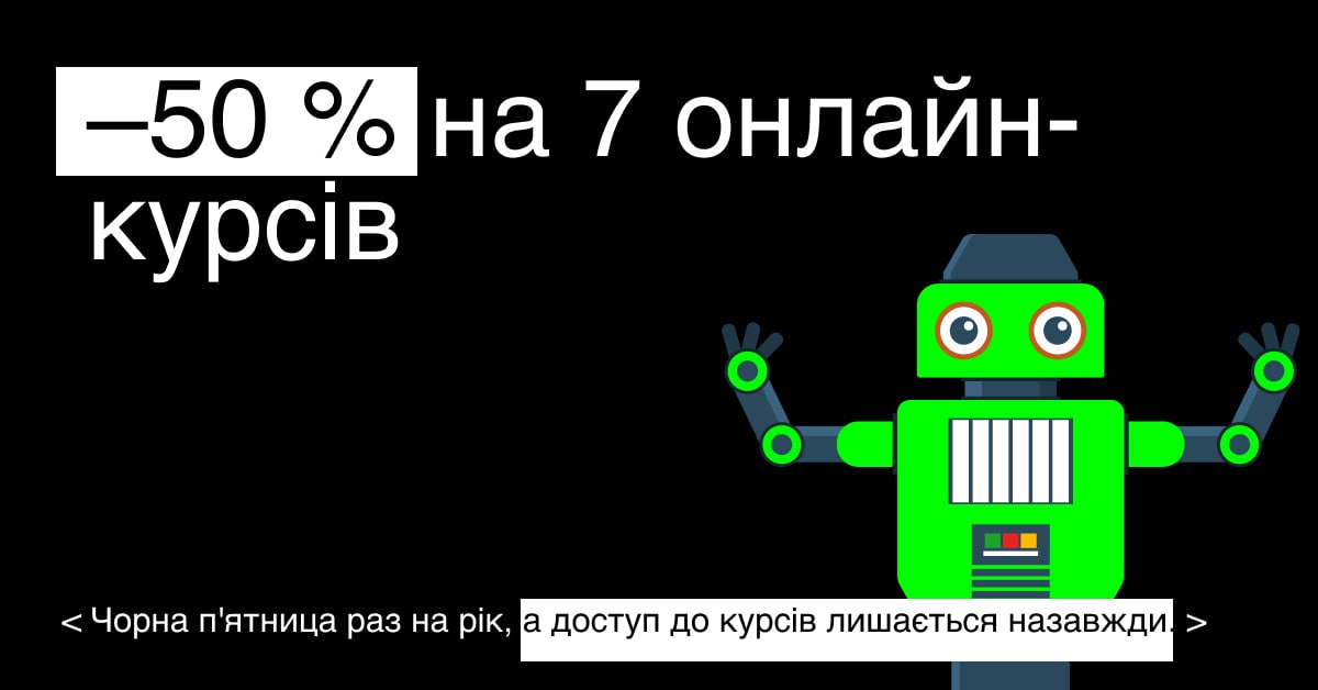 Хей, друзі, ми нагадуємо про шалену чорну п'ятницю у robot_dreams, яка закінчується вже завтра 🤖⚫️🚀