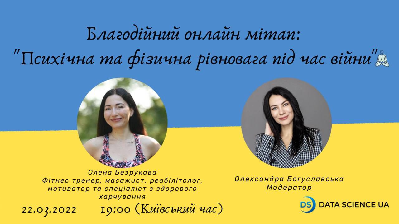 Сьогодні чекаємо вас на нашому благодійному онлайн мітапі щодо збереження свого психічного та фізичного здоров'я під час війни.