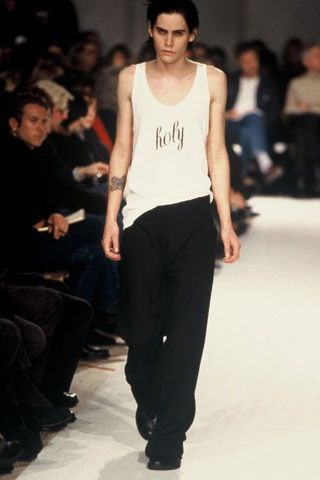 Наверное, многие видели этот знаменитый топ от Анн Демельмейстер. Первый раз он появился в коллекции 1998 года и остаётся в продаже до сих пор. Надпись «Holy» на топе — это в целом такой очевидный референс, который, уверен, вы и так знаете, но я решил напомнить.