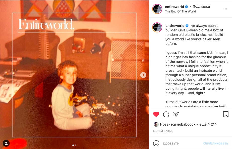 Что мне нравилось в Entireworld и в Скотте это то, как построена коммуникация — удивительно личная и искренняя. Так вышло и в случае с прощальным письмом про закрытие бренда, где несколько строк у меня очень откликнулись: