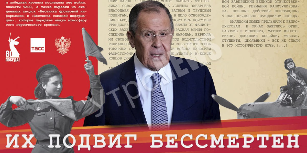«Когда мы говорим о Великой Победе, мы вспоминаем, прежде всего, ратные подвиги советских воинов, спасших мир от ужасов коричневой чумы. Свой вклад в общее дело разгрома врага внес и информационный фронт», - подчеркнул глава МИД России Сергей Лавров на торжественной церемонии открытия фотовыставки «Их подвиг бессмертен», приуроченной к 80-летию Победы в Великой Отечественной войне.