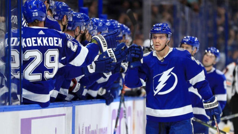 Российский нападающий Александр Волков впервые сыграл за «Тампу-Бэй» и появился на льду в стартовой тройке атаки с главными звездами команды Никитой Кучеровым и Стивеном Стэмкосом. Встреча «Тампы» с «Нью-Джерси» завершилась со счетом 7:6 в овертайме.
