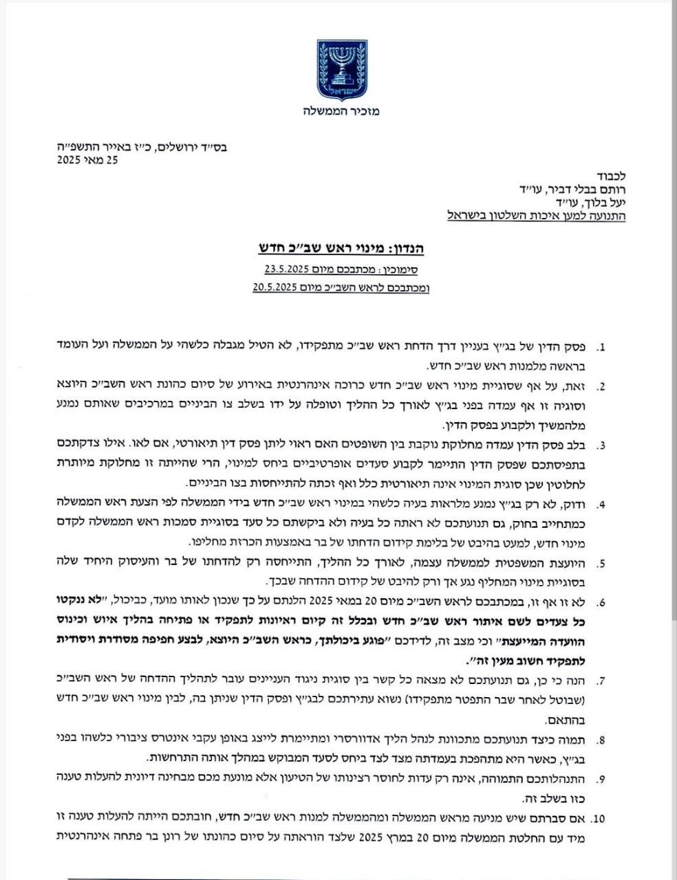 Бенгаль: "Я могу привести тебе десять примеров. Например, назначение судей в БАГАЦ".