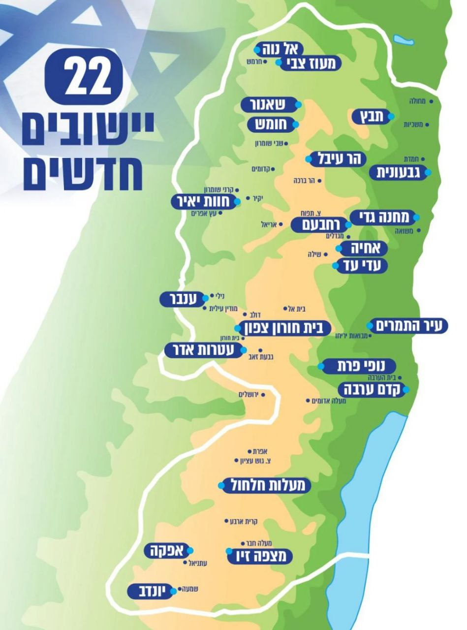 Как было впервые опубликовано на «Аруц 7»: кабинет утвердил создание 22 новых населённых пунктов в Иудее и Самарии, включая возвращение в Хомеш и Са-Нур, а также новые поселения вдоль границы с Иорданией.