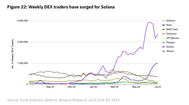 Еженедельные показатели DEX-трейдеров на Solana значительно выросли по сравнению с остальным рынком.