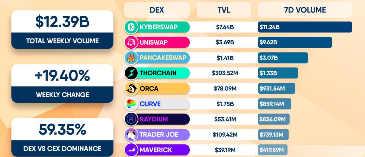 📊Децентрализованные биржи за неделю увеличили объемы торгов на 19,4% на фоне кризиса Binance