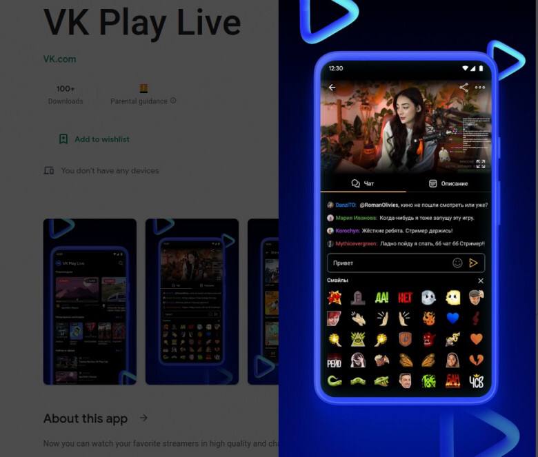 В мобильном приложении VK Play Live для Android доступны глобальные смайлы и платформы с популярными стримерами. В скором времени станут доступны персональные смайлы каналов.