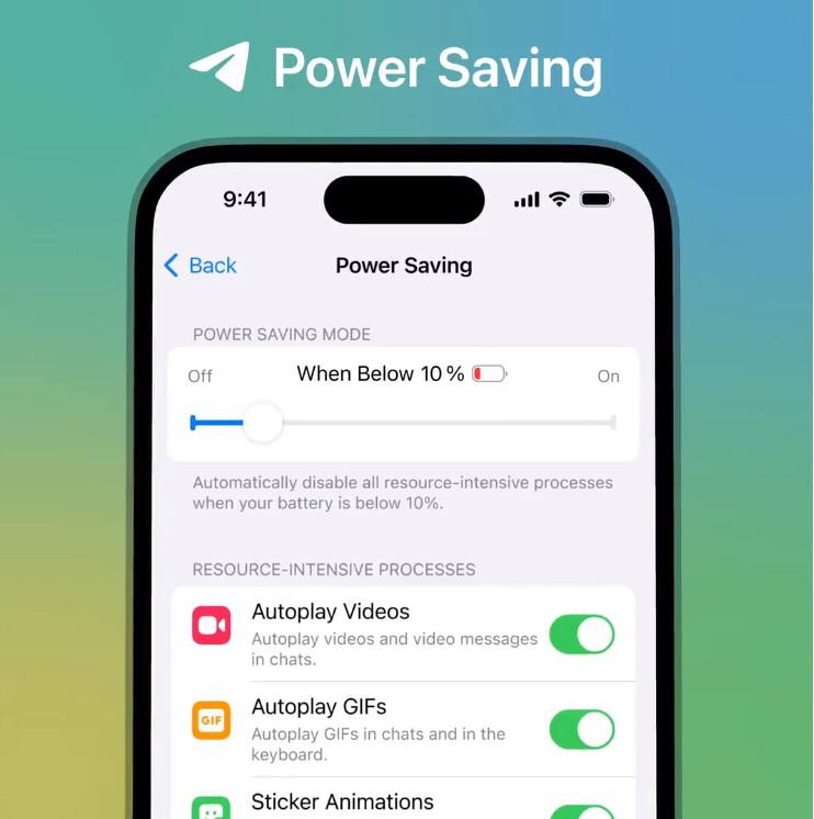 Команда Telegram объявила об обновлении, которое добавляет в мессенджер режим энергосбережения, позволяющий оптимизировать работу Telegram на менее мощных устройствах. Появились также гибкие настройки скорости воспроизведения медиа и голосовых сообщений и многое другое.