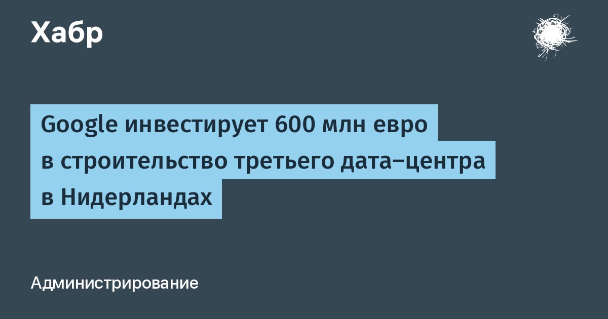 Google инвестирует 600 млн евро в строительство третьего дата-центра в Нидерландах.