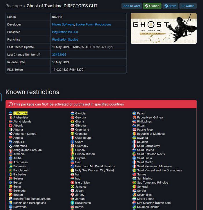 Ghost of Tsushima изъяли из продажи в Steam для 180 регионов