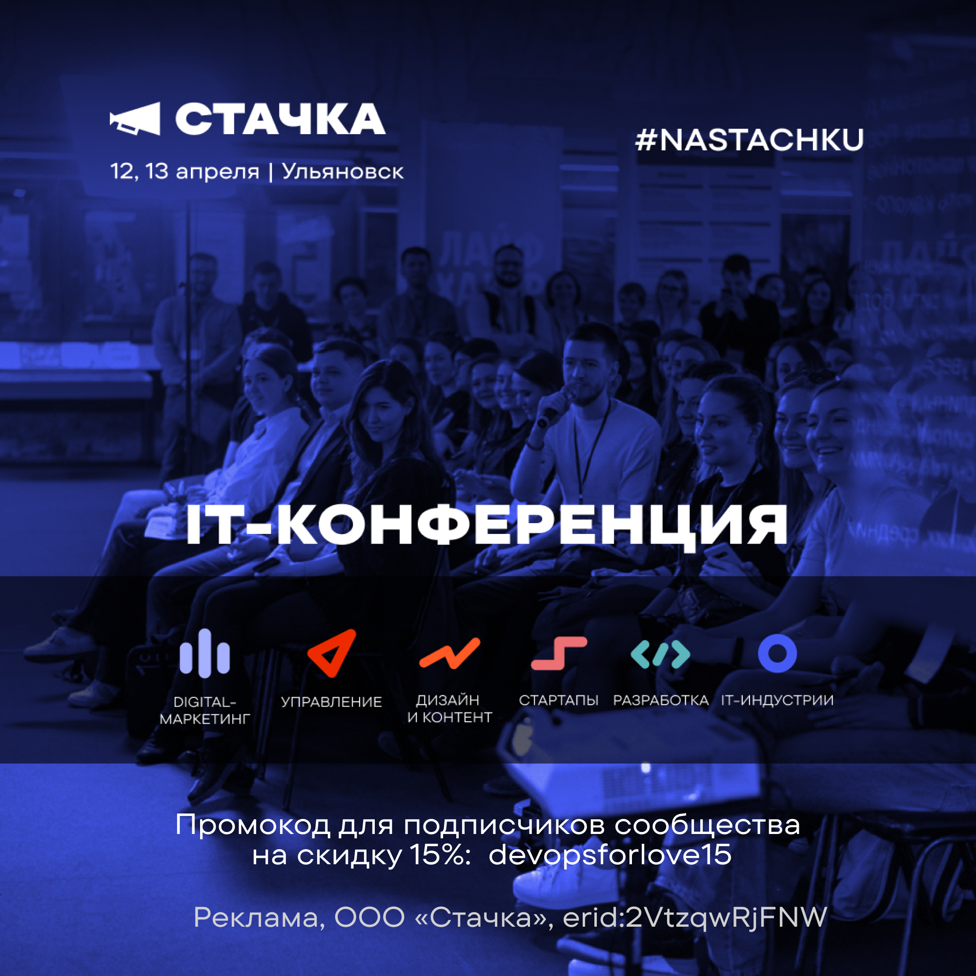 По промокоду «devopsforlove15» действует скидка 15% на все категории билетов.