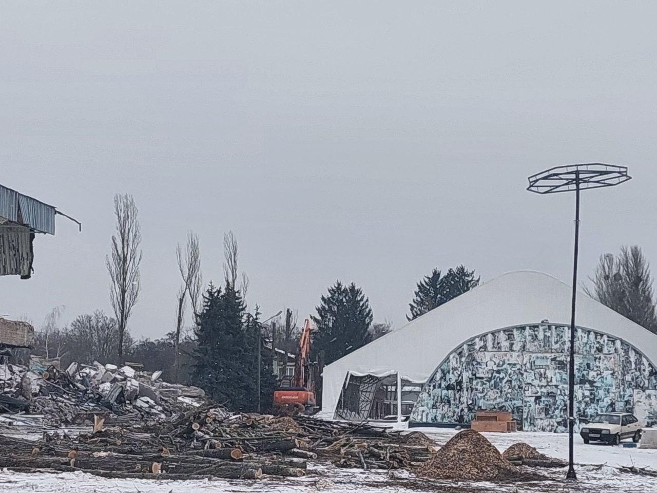 Павільйон, в якому раніше розміщувався «Кураж Базар» та відпочивали тисячі киян, майже знищено. Техніка демонтує конструкції та вивозить сміття.