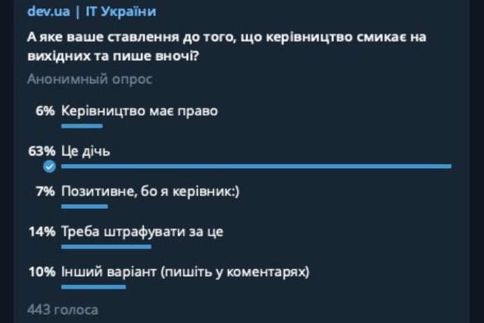 🗣Більшість опитаних: «Це «дічь», коли керівництво турбує вночі»