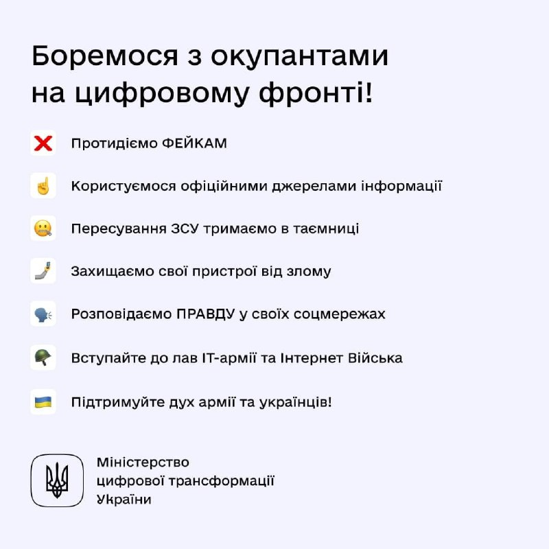 Мінцифра просить дотримуватися правил, що допоможуть вистояти під час інформаційної атаки окупантів: