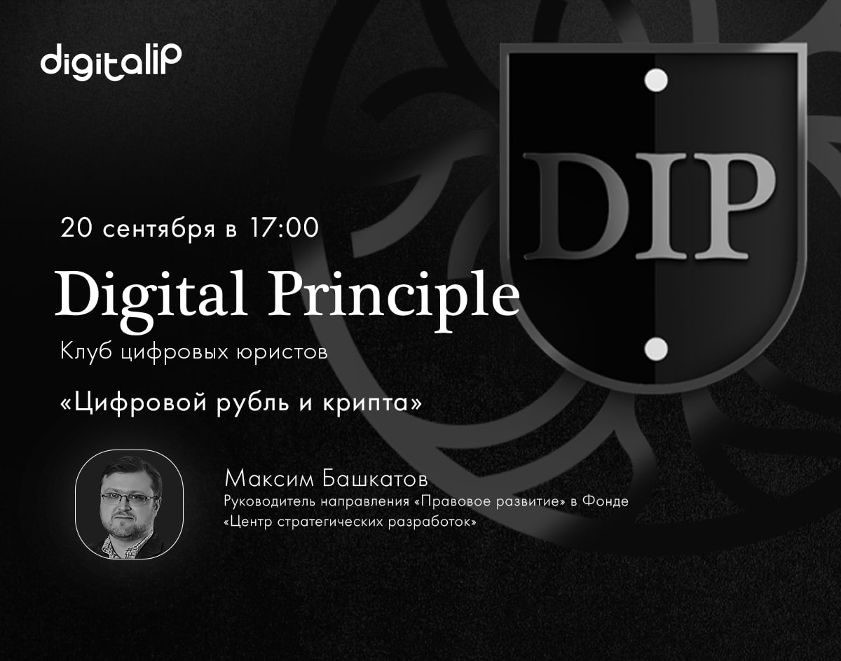 Напомним: заседание Клуба цифровых юристов Digital Principle состоится 20 сентября в 17:00. Регистрация на онлайн-трансляцию открыта на нашем сайте.