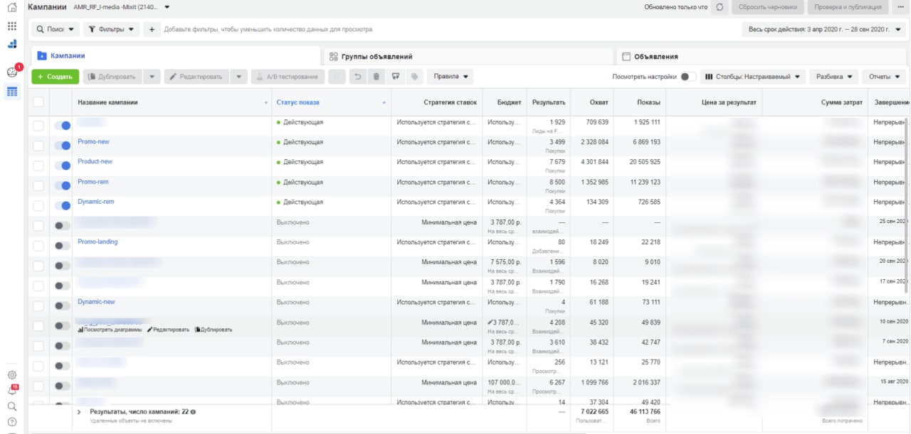 На картинке кстати пример того, как выглядит рекламный кабинет в AdsManager. В остальных отчасти схожие интерфейсы.