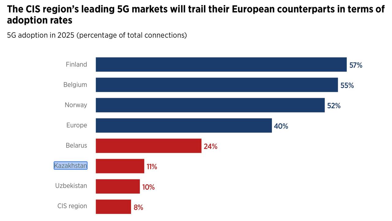 Ну, а GSM Association сделала вот такой прогноз о доле мобильных подключений по технологии 5G в Казахстане в 2025 году. Тоже нерадостно.