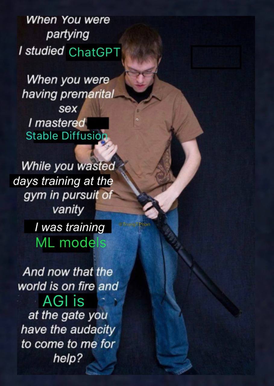 Илон Маск вчера твитнул картинку с провокационным текстом. Хотя для одного из совладельцев компании OpenAI (разработчика ChatGPT) этот текст не такой уж и тщеславный.