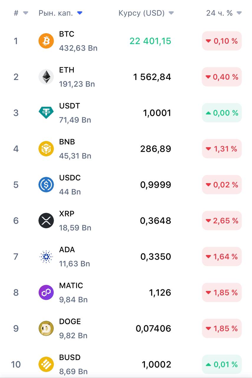 Как бы то ни было, Binance пока «на плаву», а #realdigital публикует утренние курсы топ-10 криптовалют по размеру капитализации от Coinmarketcap