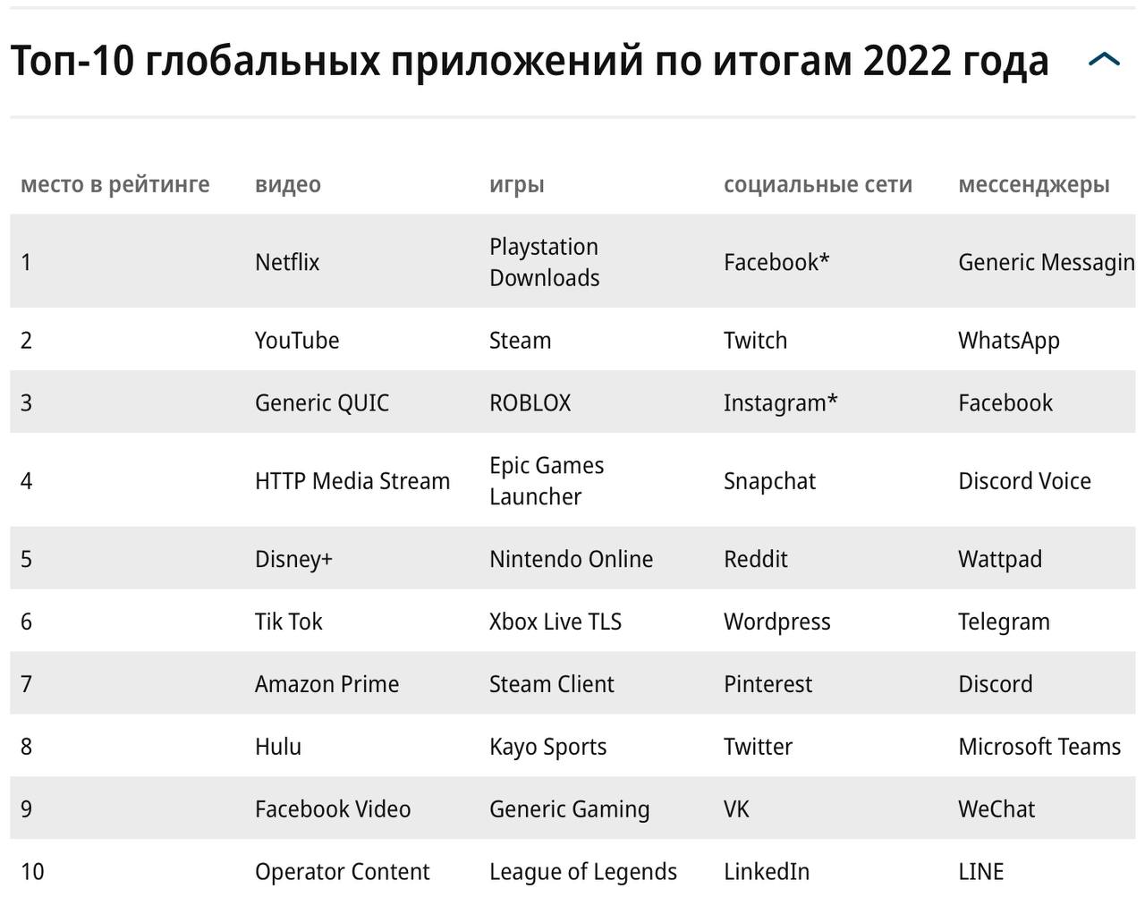 «2023 Global Internet Phenomena Report» канадской компании Sandvine, более 20 лет специализирующейся на анализе мировой паутины и различных интернет-приложений и сервисов.