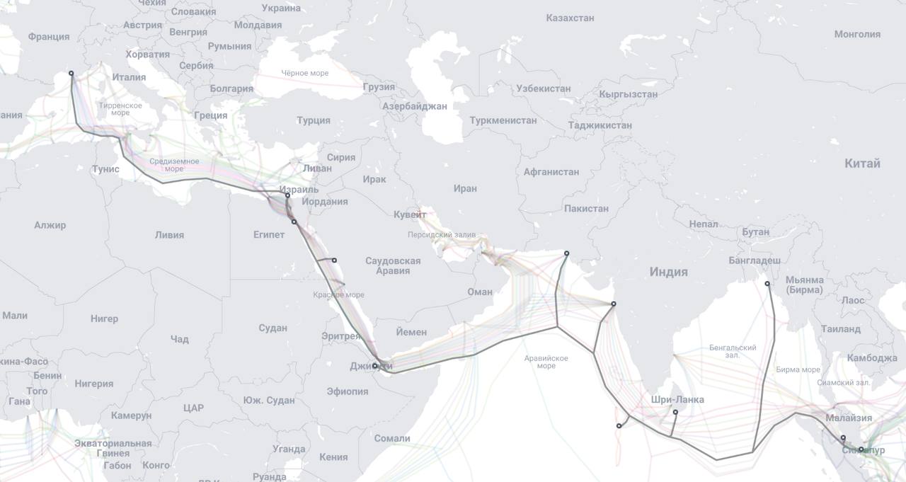 Схема SeaMeWe-6 с сайта submarinecablemap.com